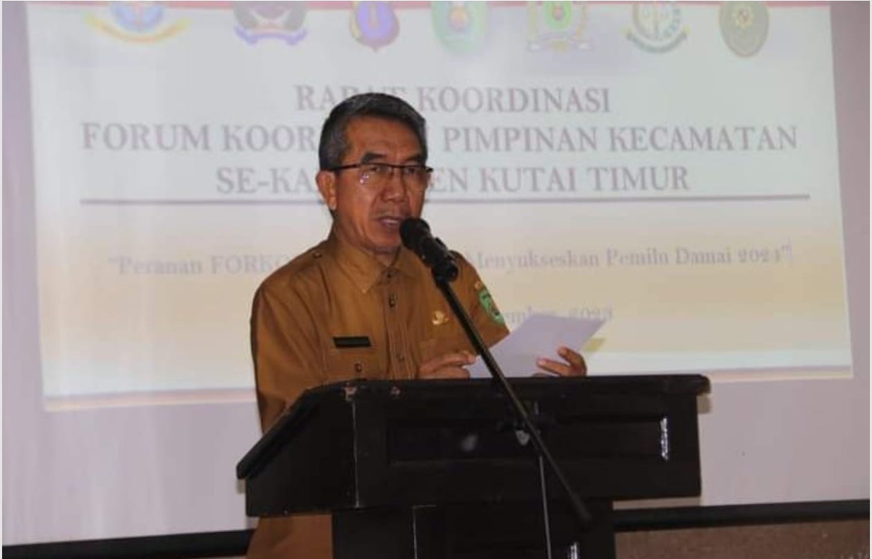 KALTIM.RADAR24.CO.ID – Menghadapi perhelatan Pemilihan Umum (Pemilu), Bupati Kutai Timur (Kutim) Ardiansyah Sulaiman memimpin Rapat Koordinasi (Rakor) bersama Forum Komunikasi Pimpinan Daerah (Forkompinda) dan Forum Komunikasi Pimpinan Kecamatan (Forkopimcam) se-Kutkm yang digelar Badan Kesatuan Bangsa dan Politik (Kesbangpol), Senin (20/11/2024).