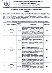 Jadwal ini merupakan hasil kesepakatan dalam Rapat Badan Musyawarah (Bamus) yang ditandatangani langsung oleh Wakil Ketua II DPRD Soppeng, Muhammad Taufan.