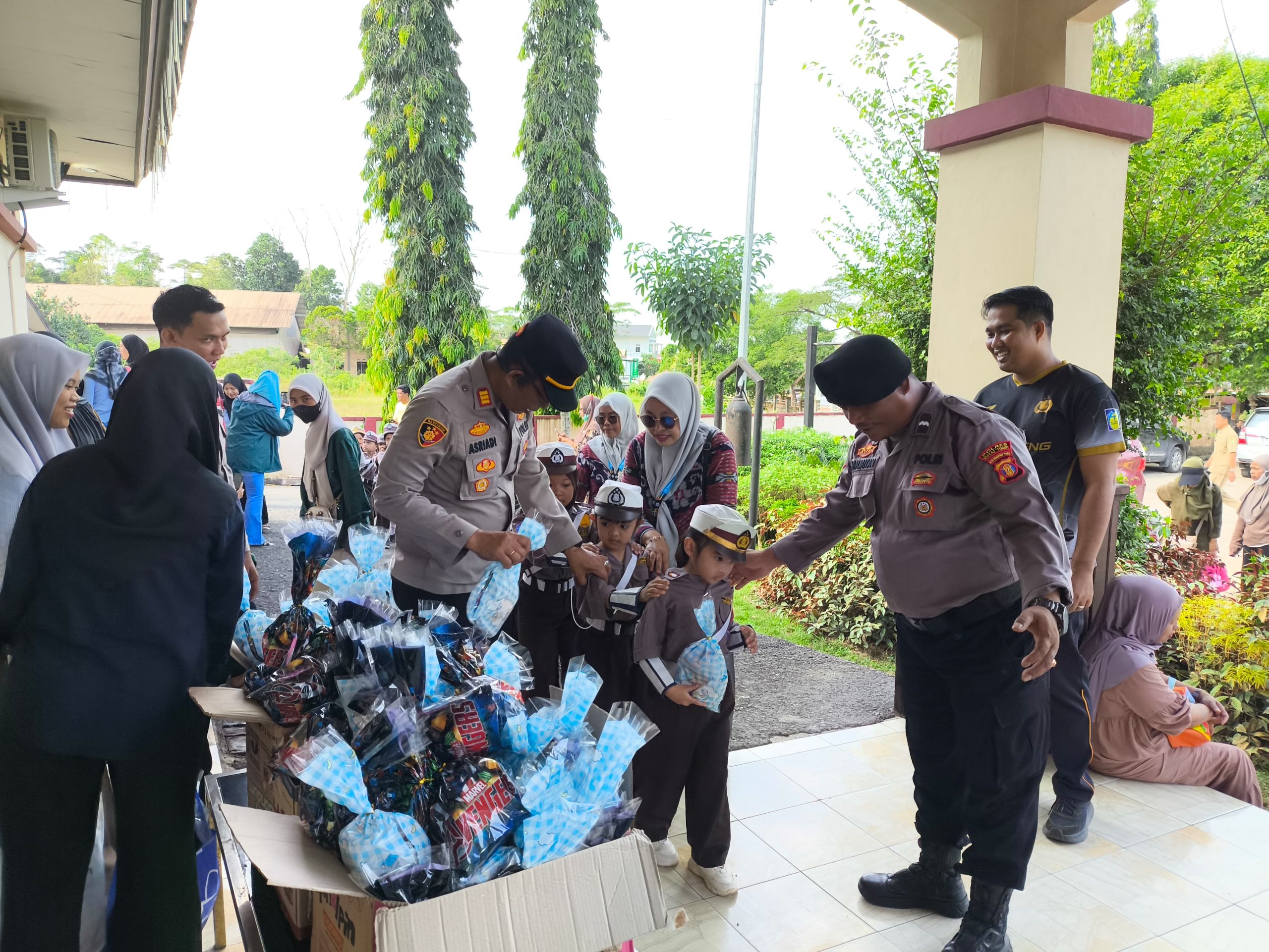 Anak-anak TK Tunas Melati terlihat gembira ketika menerima bingkisan snack dan berinteraksi dengan personel polisi. Mereka juga mendapatkan kesempatan untuk mengenal lingkungan kepolisian secara ramah dan edukatif.