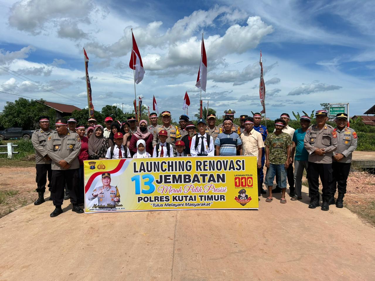 Kaltim.radar24.co.id, KUTAI TIMUR – Kepolisian Resor (Polres) Kutai Timur (Kutim) resmi melaksanakan launching renovasi 13 Jembatan Merah Putih Presisi di wilayah hukumnya. Satu jembatan perdana langsung diresmikan di lingkungan asrama Polsek Sangatta Utara, sementara 12 jembatan lainnya akan menyusul direnovasi secara bertahap.