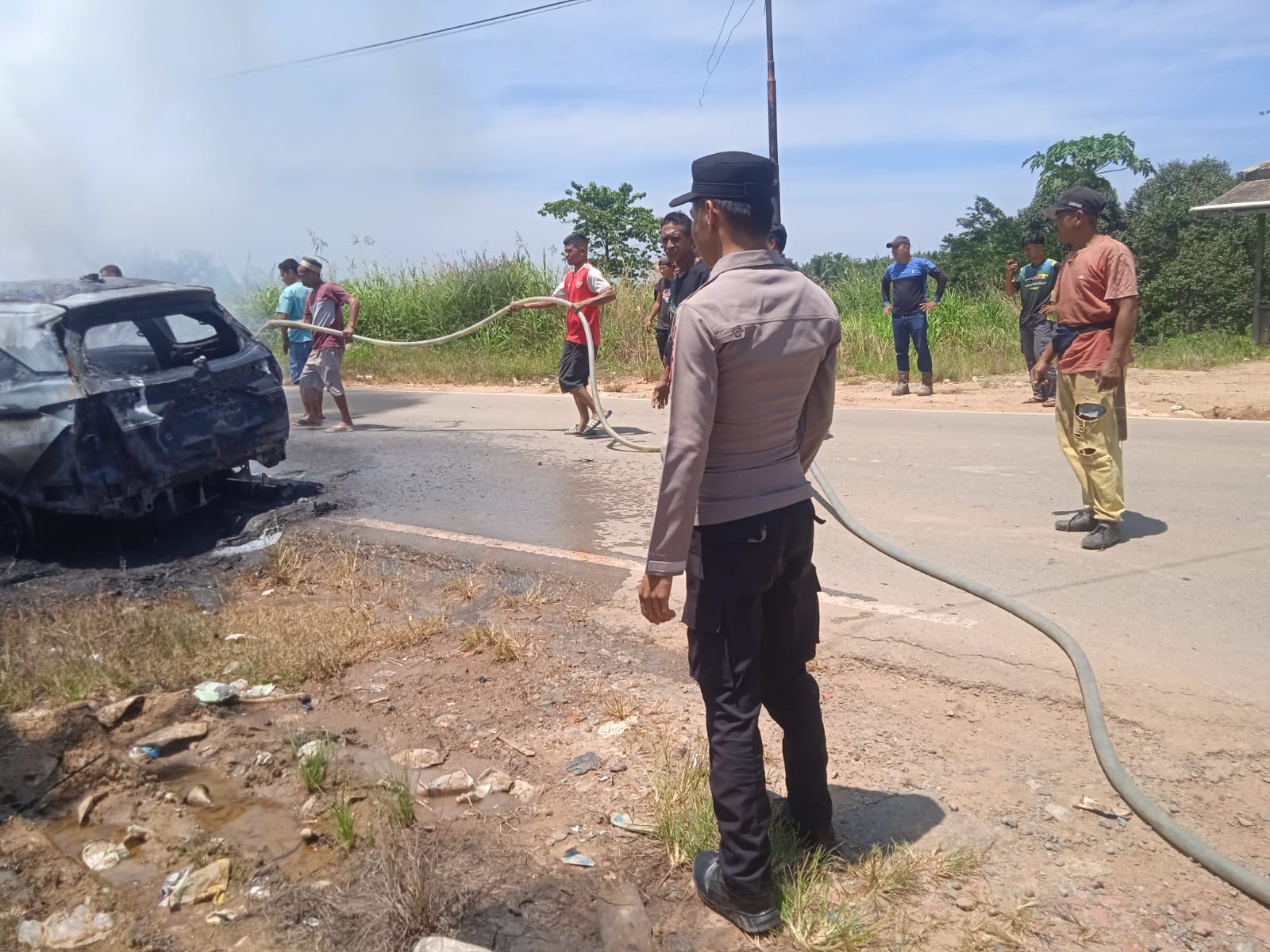 “Begitu menerima laporan, personel kami langsung menuju TKP untuk mengamankan lokasi, membantu pemadaman, serta mengumpulkan keterangan dari para saksi guna mengetahui penyebab pasti kejadian,” ujar AKP Asriadi.