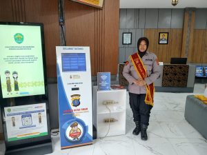Dalam kegiatan piket pelayanan di ruang SPKT Polres Kutim, Aipda Yuni Lestari, tampak sigap dan ramah melayani setiap kebutuhan masyarakat yang datang.