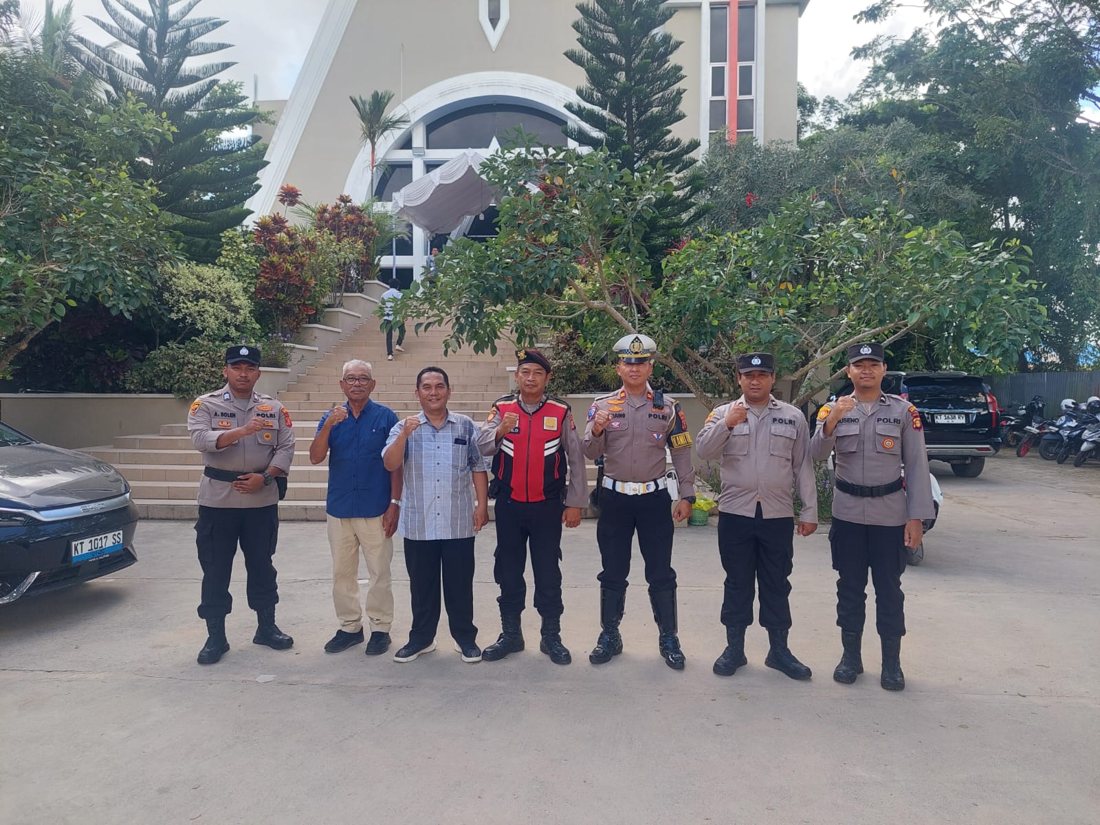Di balik suasana damai tersebut, jajaran Polres Kutai Timur hadir memberikan pengamanan secara humanis guna memastikan seluruh rangkaian kegiatan berjalan lancar. Sebanyak 11 personel diterjunkan untuk mengamankan jalannya ibadah serta mengatur arus kendaraan jemaat yang mencapai 110 unit roda dua dan 60 unit roda empat.