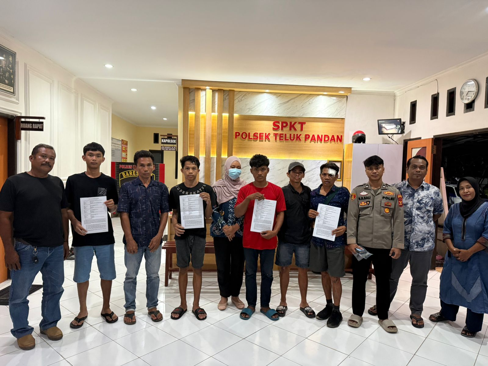 Menindaklanjuti kejadian tersebut, Polsek Teluk Pandan bergerak cepat dengan mempertemukan pihak korban dan para terduga pelaku dalam forum mediasi atau problem solving. Melalui pendekatan persuasif, kedua belah pihak akhirnya sepakat menyelesaikan permasalahan secara kekeluargaan.